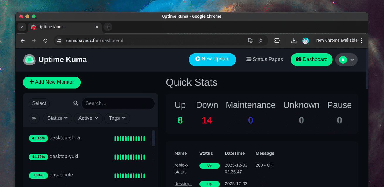 A self-hosted monitoring tool that helps me keep track of the uptime and status of my services.