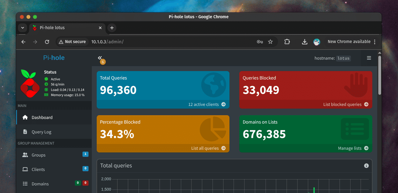 A network-wide ad blocker that acts as a DNS sinkhole, improving my network's performance and security.