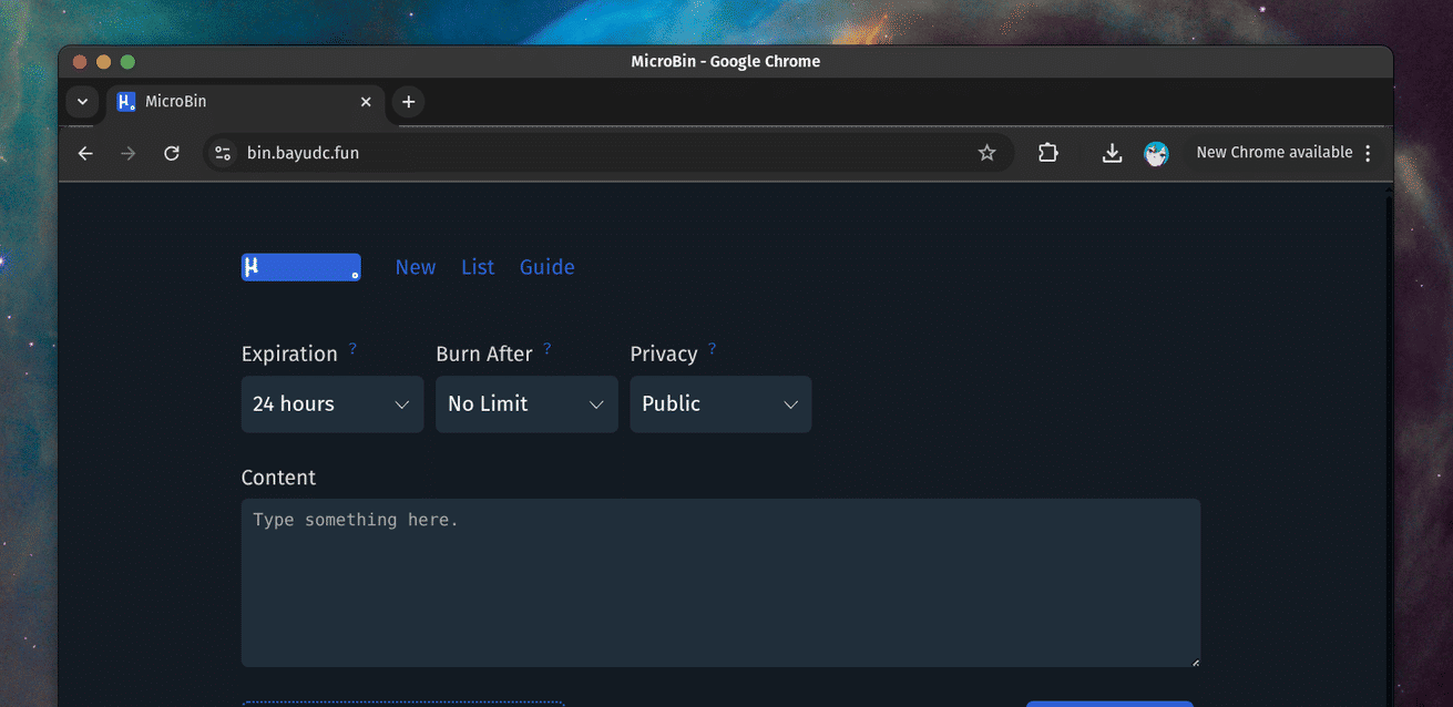A minimalist pastebin service for sharing text snippets quickly and easily.